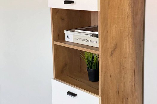 Состоит из: шкафа с 2-мя закрытыми и 1-ой открытой секцией со съемной полкой.