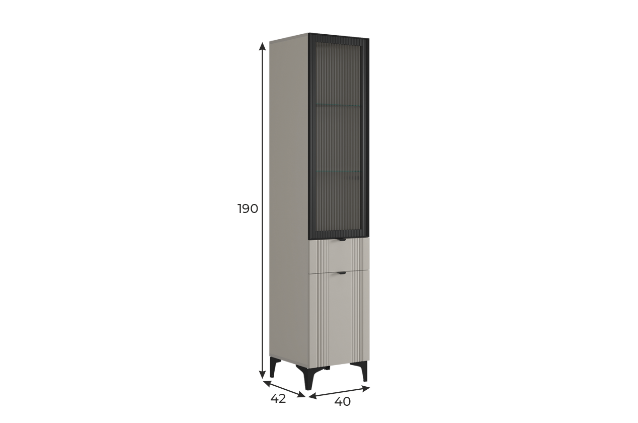 Рич Шкаф однодверный (со стеклом) кашемир/фрапучино матовый/черный из каталога Модульные гостиные купить в Перми в магазине мебели онлайн Мебельсон по цене 22 690 ₽