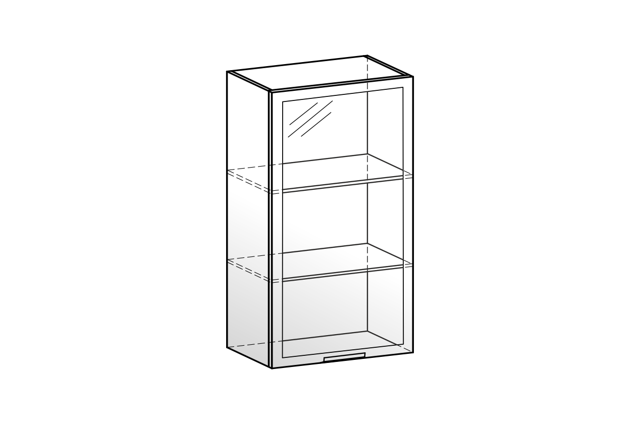 Навесной шкаф с полками из серии «Алюм». Замечательно подойдет для хранения специй и круп, а также посуды.