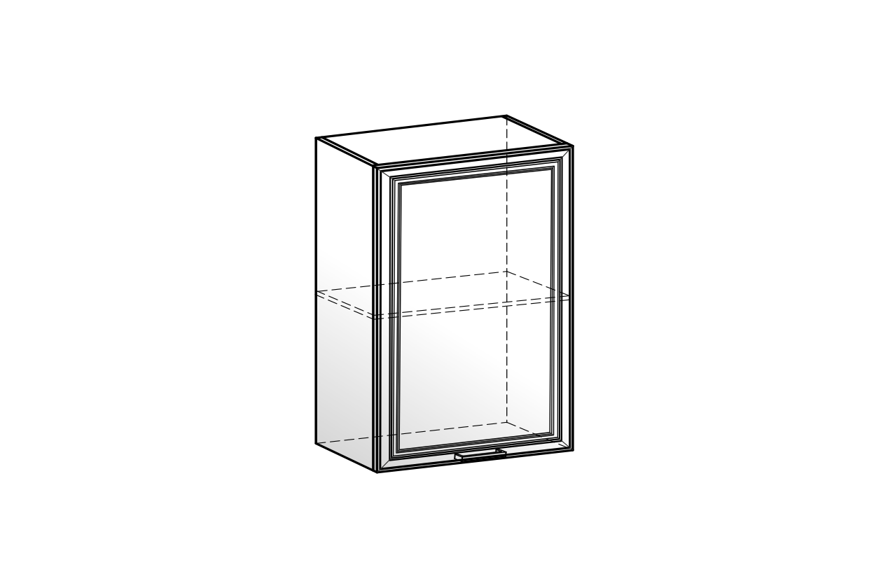 Атланта Шкаф навесной L500 Н720 (1 дв. гл.) (эмаль) белый/сливки патина платина из каталога Атланта купить в Перми в магазине мебели онлайн Мебельсон по цене 9 080 ₽