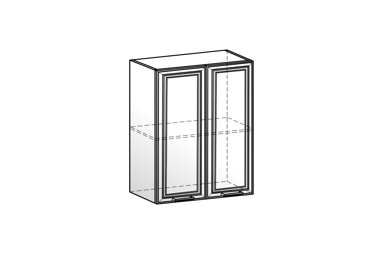 Атланта Шкаф навесной L600 Н720 (2 дв. гл.) (эмаль) белый/сливки патина платина из каталога Атланта купить в Перми в магазине мебели онлайн Мебельсон по цене 10 480 ₽