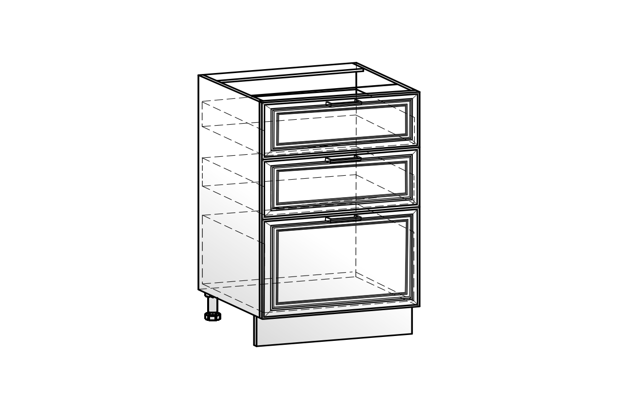 Атланта Шкаф рабочий L600 Старт (3 ящ.) (эмаль) белый/белый глянец патина золото из каталога Атланта купить в Перми в магазине мебели онлайн Мебельсон по цене 20 280 ₽