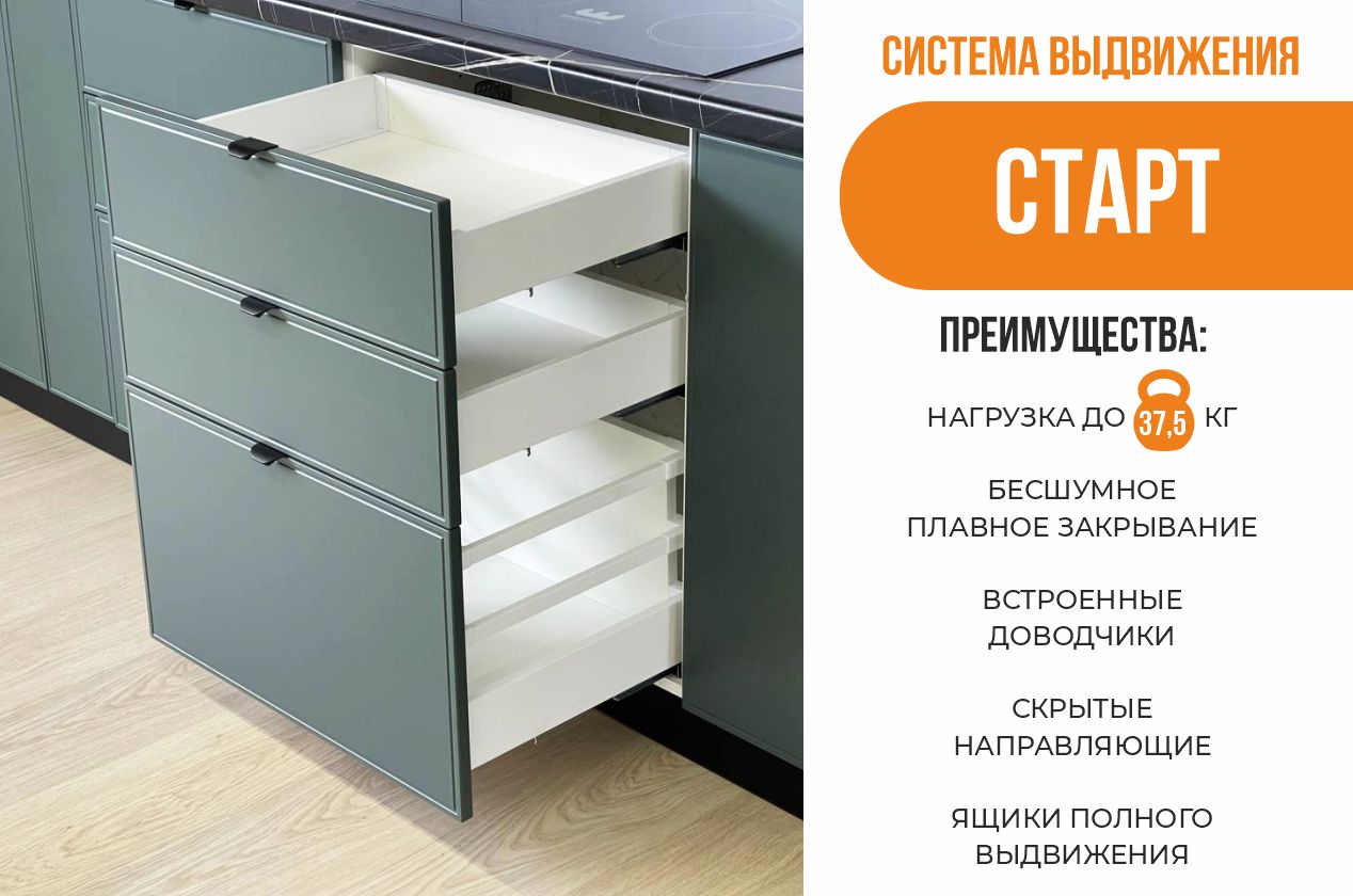 Состоит из:  шкаф рабочий с 3-мя выкатными ящиками с системой выдвижения СТАРТ - безшумное открывание.
