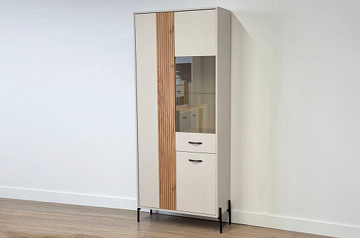Доминика Шкаф двухдверный (со стеклом) кашемир/дуб крафт золотой из каталога Витрины купить в Перми в магазине мебели онлайн Мебельсон по цене 20 790 ₽