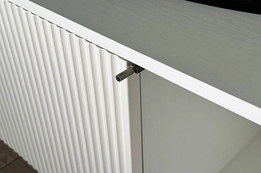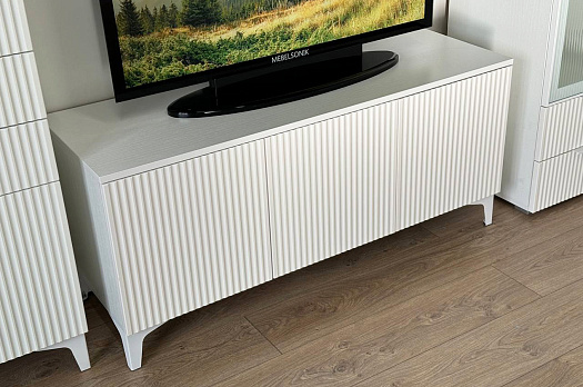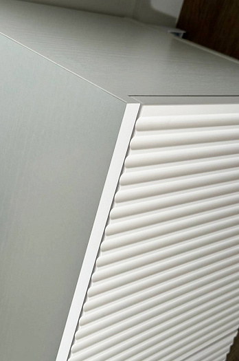 Гостиная "Зефир К1" (2200х424х1900) белое дерево/белый муар/белый (эмаль) из каталога Модульные гостиные купить в Перми в магазине мебели онлайн Мебельсон по цене 55 330 ₽