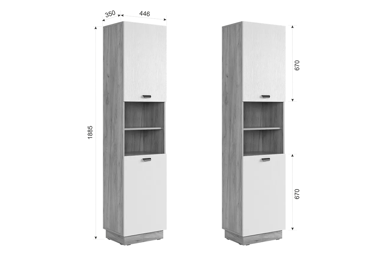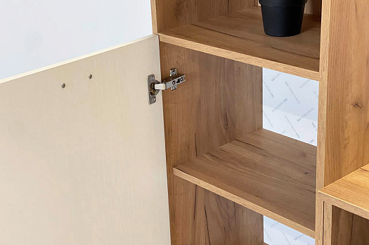 Состоит из: шкафа с 2-мя закрытыми и 1-ой открытой секцией со съемной полкой.