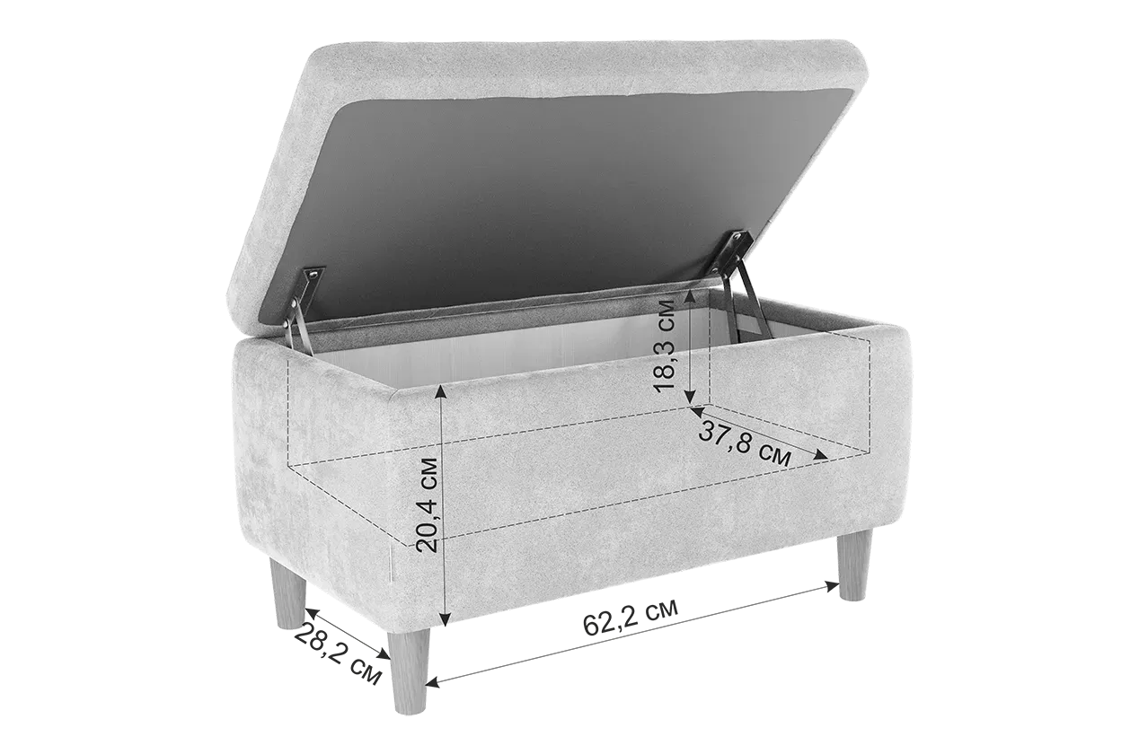 Пуф "Чарли 2" незаменимая классика, плавные линие, деревянные опоры 130мм, которые очень легко откручиваются, каретная стяжка придают изысканный стиль. Скрытый внутренний ящик позволит организовать дополнительное хранение. Механизм открывания крышки продуман так, что вы сможете ставить его вплотную к стене.Пуф "Чарли 2" отлично впишется в интерьер вашего дома.