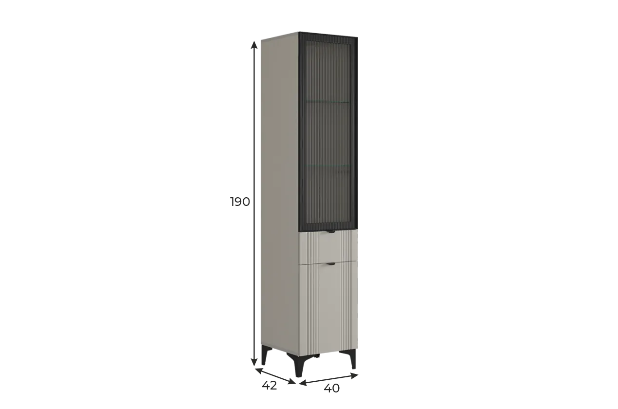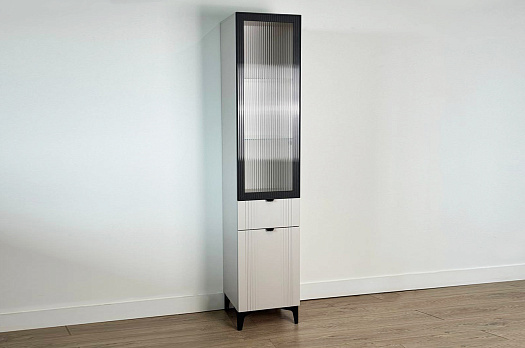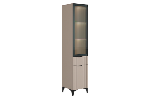 Рич Шкаф однодверный (со стеклом) кашемир/фрапучино матовый/черный из каталога Модульные гостиные купить в Перми в магазине мебели онлайн Мебельсон по цене 22 690 ₽