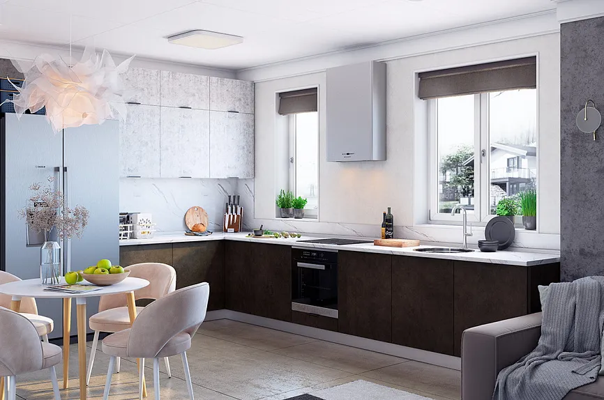 - Малогабаритные кухни идеально подходят для небольших квартир в Москве. Они спроектированы так, чтобы максимально эффективно использовать ограниченное пространство.
