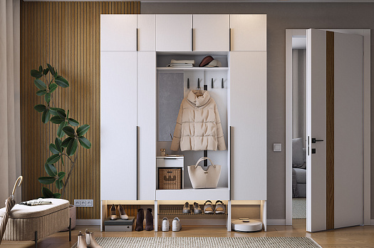Прихожая "Баско К9" белое дерево из каталога Модульные прихожие купить в Перми в магазине мебели онлайн Мебельсон по цене 43 850 ₽