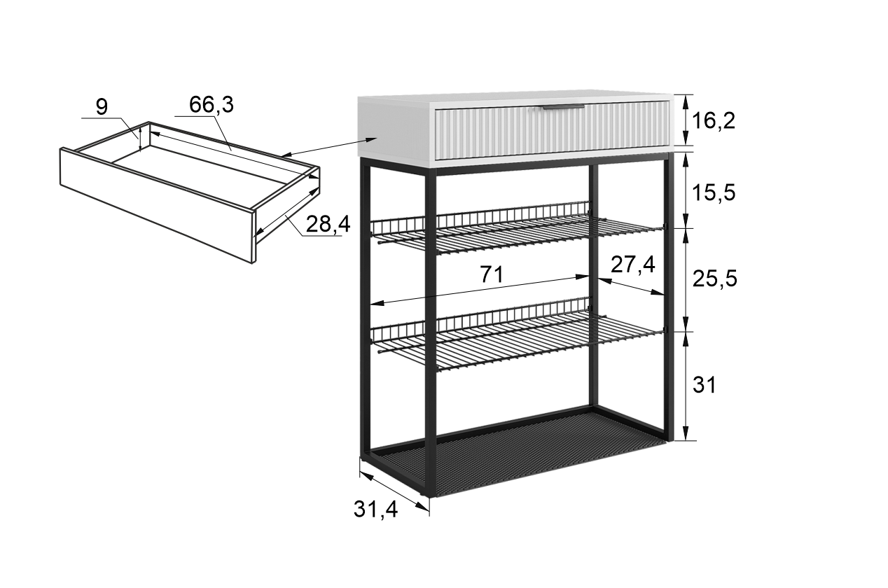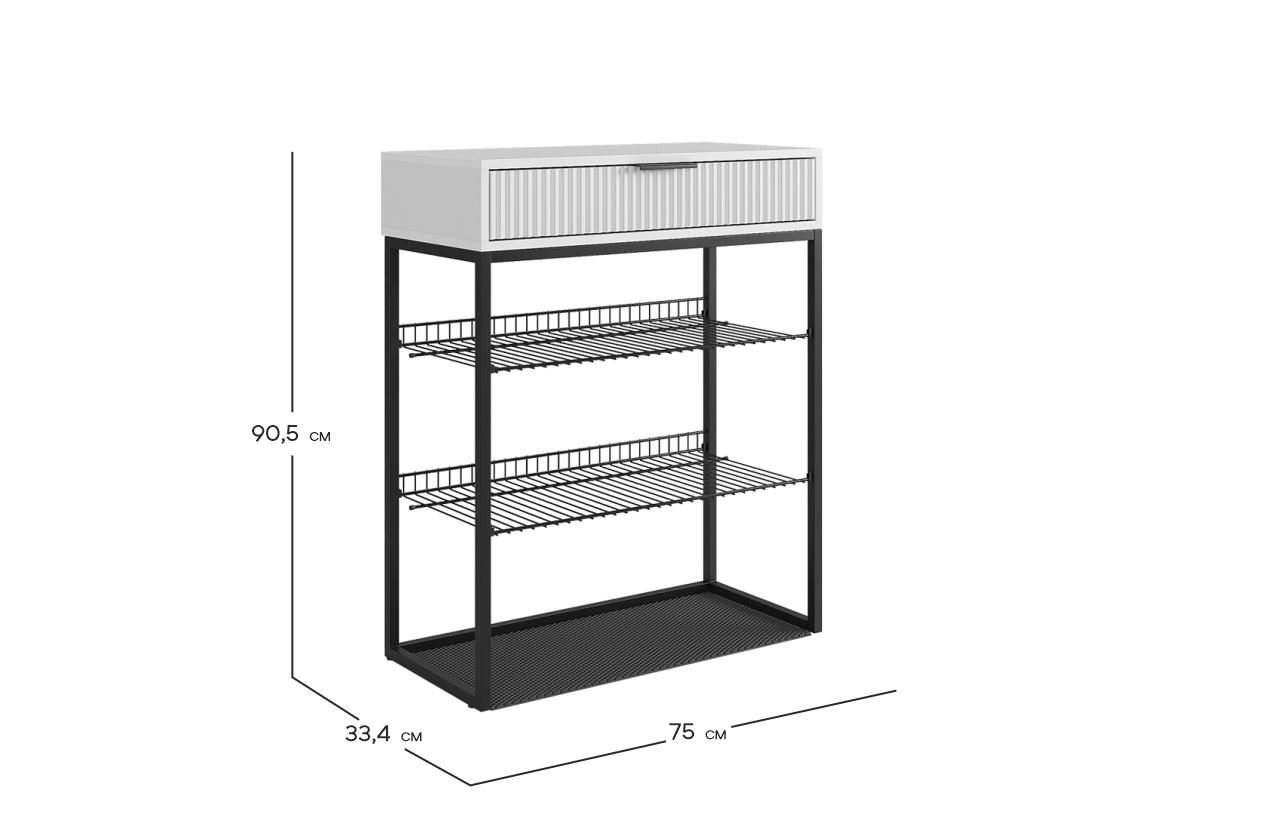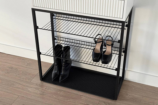 Обувница Вельвет прекрасно сочетает в себе стиль и функциональность. Её дизайн в стиле лофт идеально подходит для современных интерьеров. Выдвижной ящик с шариковыми направляющими обеспечивает бесшумное и плавное открывание, предоставляя удобный доступ к вашим аксессуарам и мелочам. Регулируемые опоры и специальный коврик обеспечивают дополнительный комфорт и защиту.