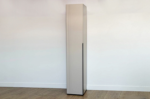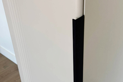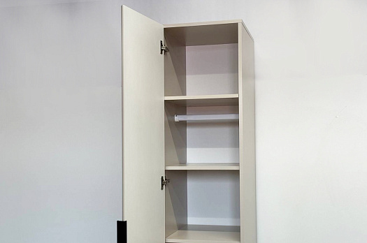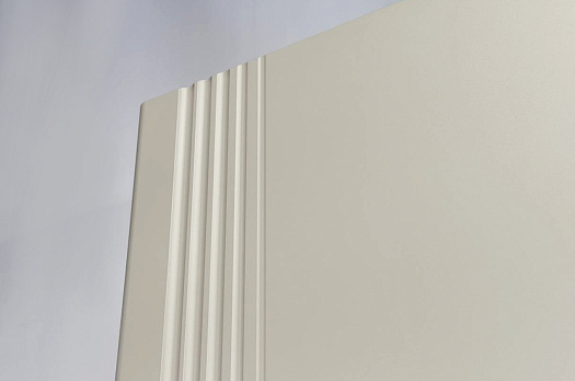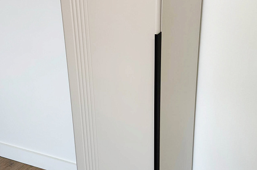 Особое внимание заслуживает фрезеровка фасада, которая придаёт шкафу изысканный вид. Длинная пластиковая ручка гармонично дополняет общий стиль.