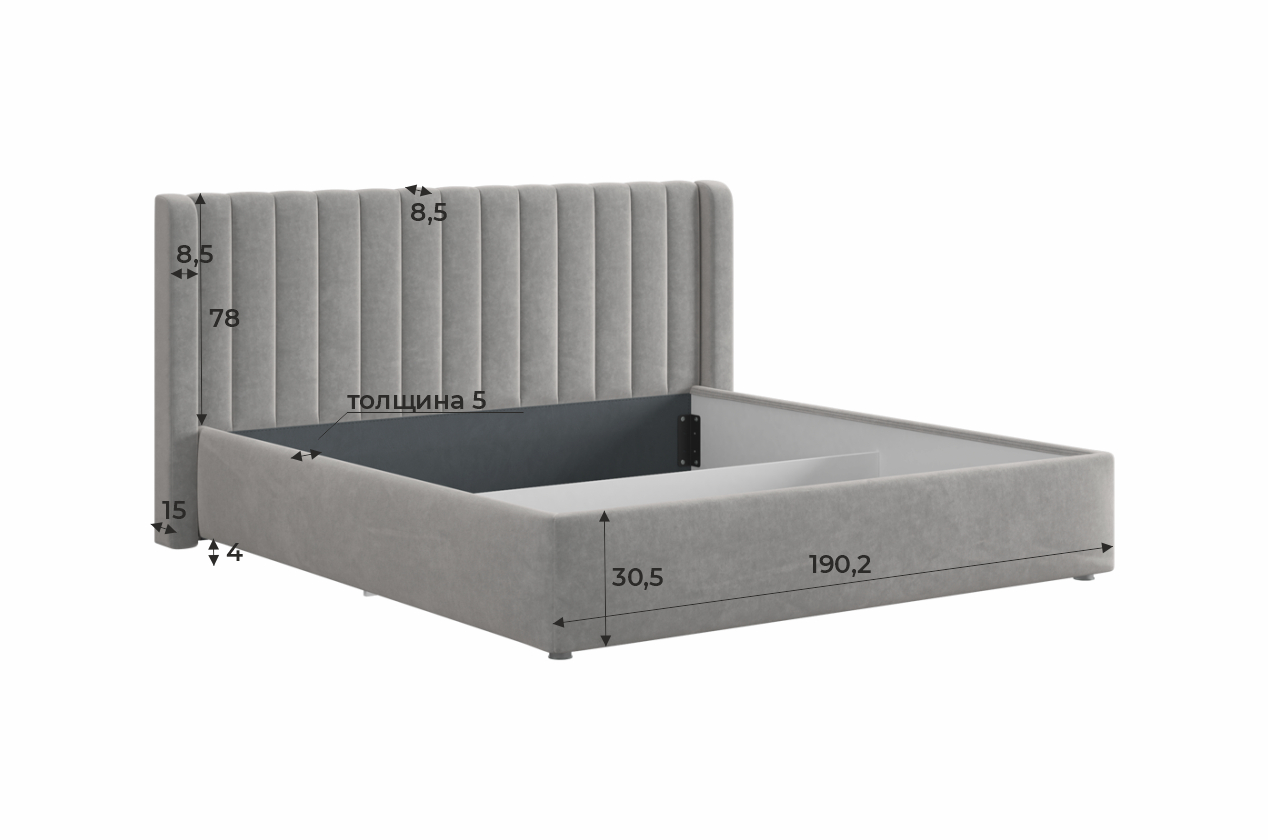 Кровать с подъемным механизмом Ева 180х200 см графит (велюр) из каталога Двуспальные кровати купить в Перми в магазине мебели онлайн Мебельсон по цене 48 280 ₽