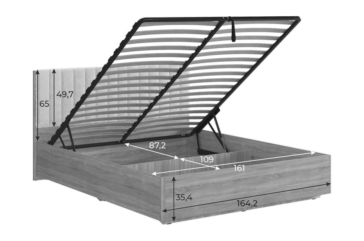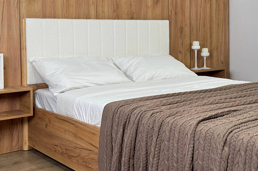 Состоит из: изголовья с мягким элементом, каркаса из ЛДСП и места спального с подъемным основанием..