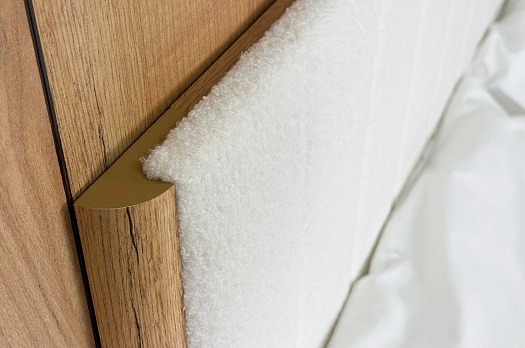 Эта кровать выполнена из прочного ЛДСП с мягким изголовьем из приятного на ощупь и практичного в быту материала. Полукруглые МДФ профили в изножье и изголовье обеспечат безопасность и комфорт.