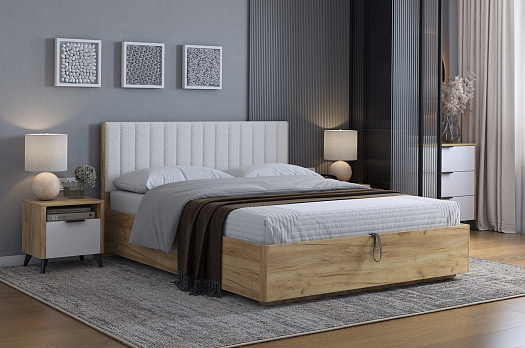Кровать с подъемным механизмом Юлия 160х200 см (дуб крафт золотой/белый (плюш))