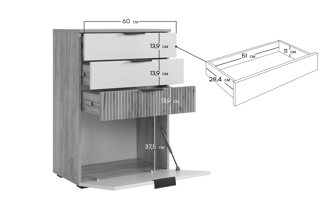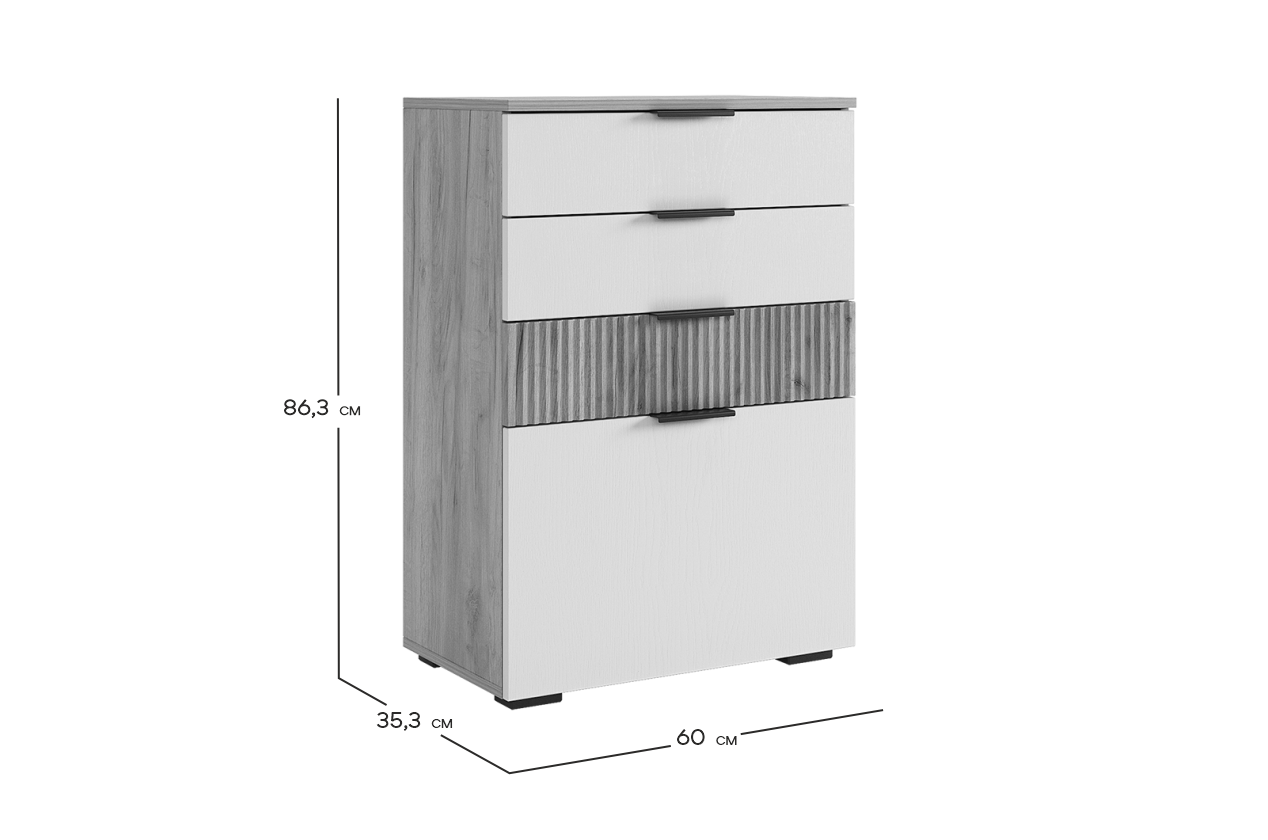 Покупал комод в дополнение к шкафу из той же серии "Бери". Цветовое решение идеально совпадает, получился гармоничный комплект. Комод компактный, но вместительный - 3 выдвижных ящика и закрытая секция позволяют разложить вещи по категориям. Направляющие качественные, ящики выдвигаются легко и бесшумно, закрытая секция - большая. Хорошее качество за разумную цену!
