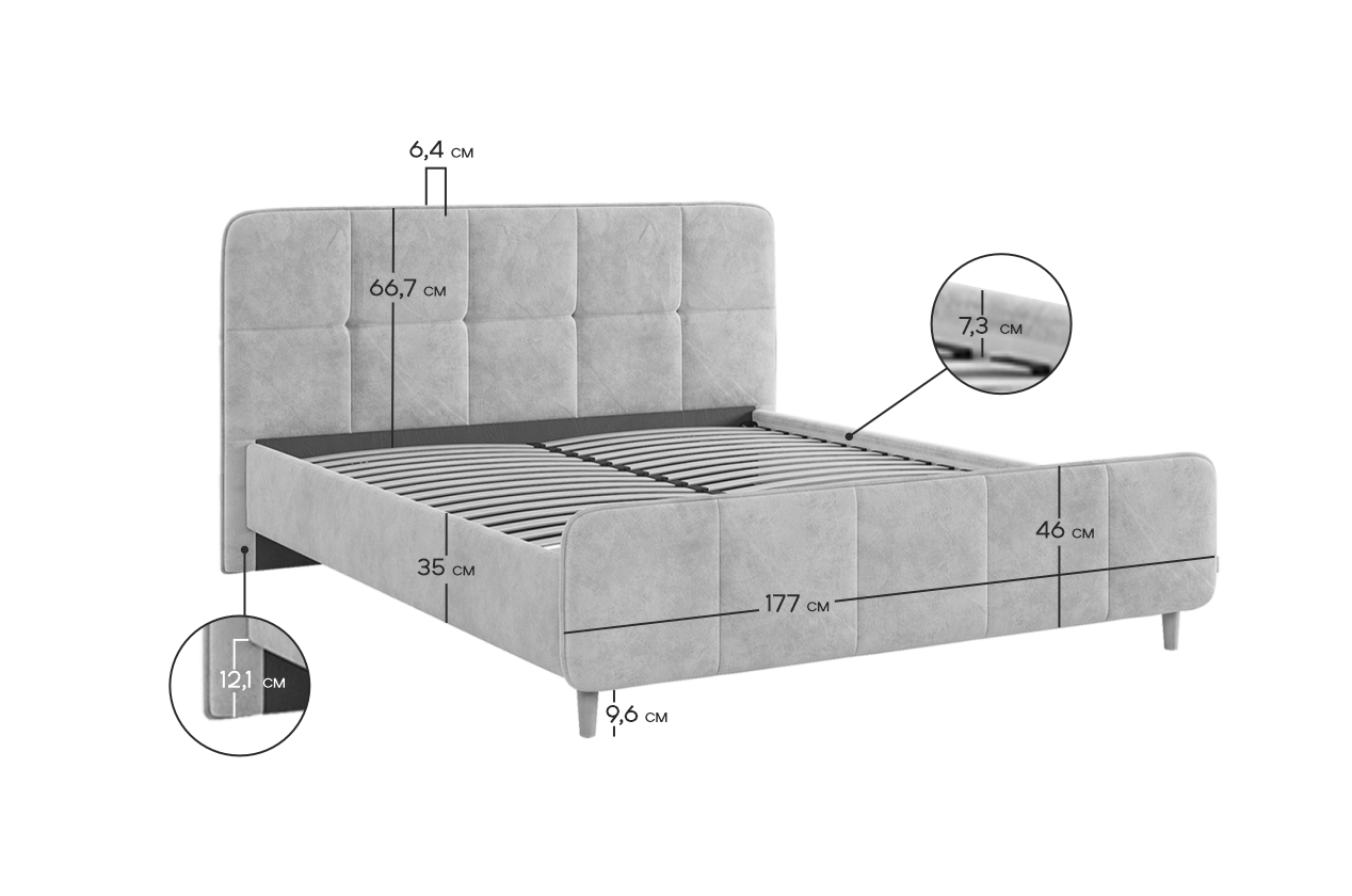 Кровать с основанием Грета 160х200 см грей алькантара (велюр) из каталога Двуспальные кровати купить в Перми в магазине мебели онлайн Мебельсон по цене 32 890 ₽