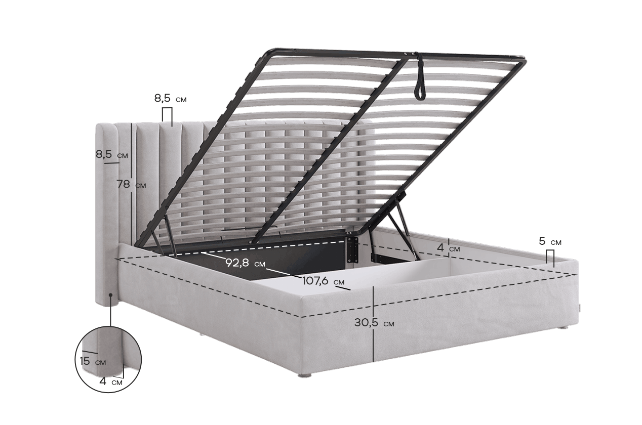 • Основание кровати: Ортопедическое основание с подъемным механизмом