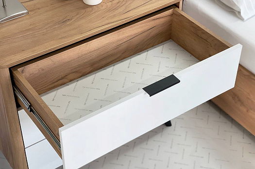 Благодаря полукруглым профилям на боковинах комода, вы легко и безболезненно обойдете углы, даже если поставите комод в самое узкое пространство.